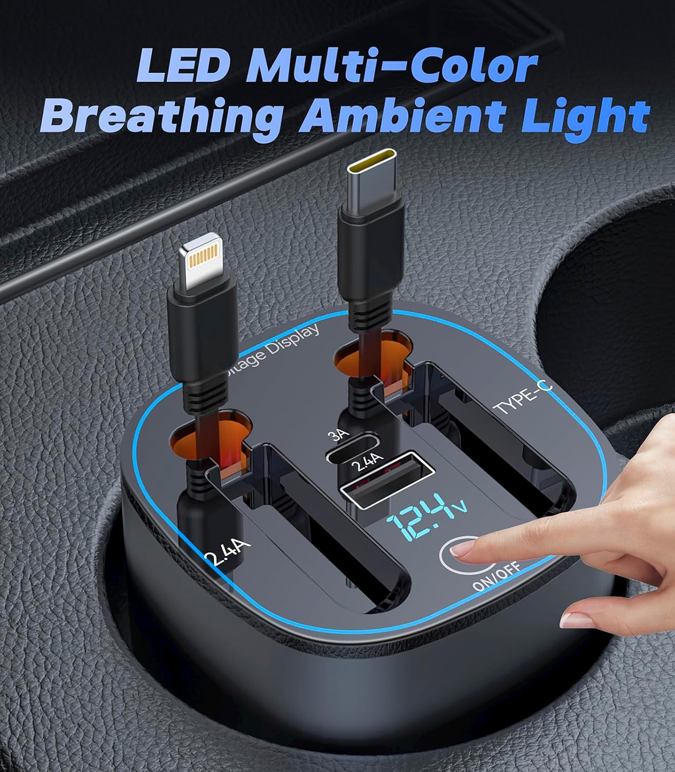 - Innovative Cup Holder Design, Universal Fit: The unique cup-shaped base fits securely in any car cup holder, providing a stable and incredibly convenient charging hub within easy reach.