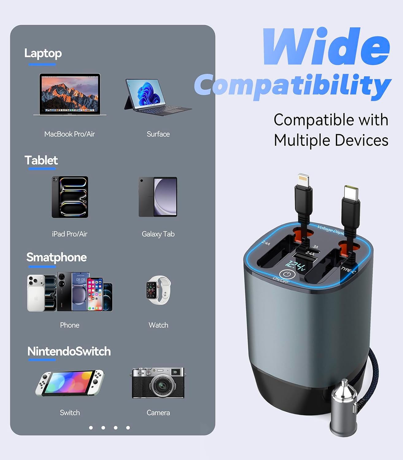 - Universal 12V/24V Compatibility for Any Vehicle: Works seamlessly with all cars, trucks, and SUVs that have a standard 12V or 24V cigarette lighter socket.