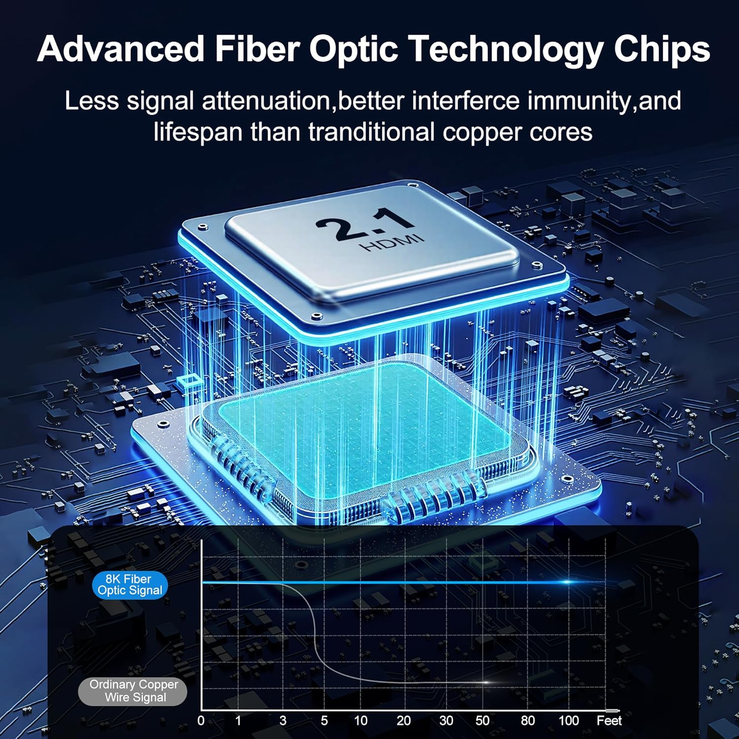 - 【8k Fiber Optic HDMI Cable】HDMI Cable 75ft Engineered with most advanced fiber optic technology for superior lightweight, ensures ultra-fast data transmission, less signal attenuation, better interference immunity, and 10x longer lifespan than copper cables. Ideal for in-wall installations and home renovation