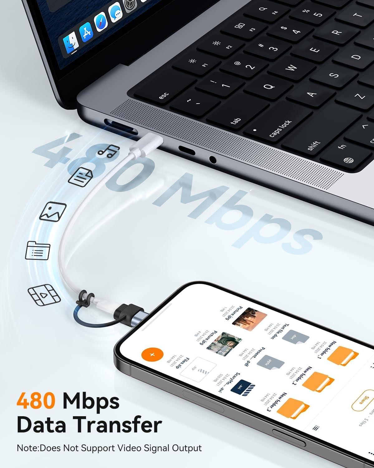 - Pay Attention Before Purchased:Please Note the adapter can be only used for Charging and Data Transfer between Phone and Laptop. Not support OTG video and audio function, Lightning headphones, Not for A-pple Pencil, Flash drive, SD card reader, square reader,printer, Microphone,Camera,Mouse,MIDI keyboard,Hubs,HDMI Converter,etc
